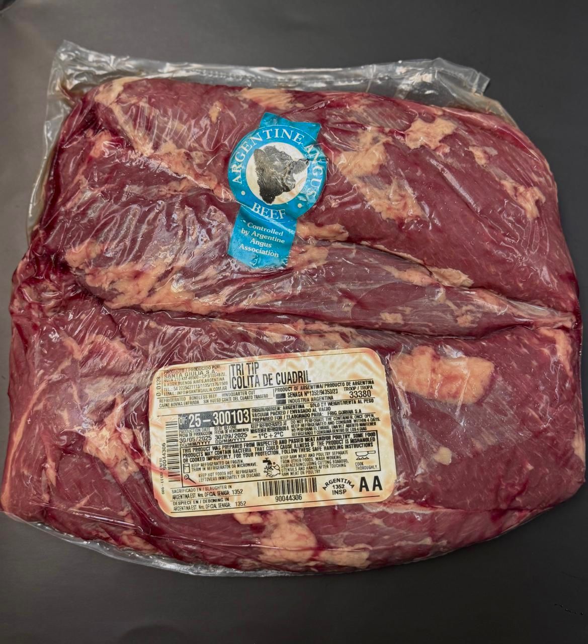 The Beef Tri-Tip, known as Colita de Cuadril in Spanish, is a tender and flavorful cut that stands out for its versatility. It comes from the triangular section of the sirloin primal, where the sirloin meets the round and flank primals. The name "Tri-Tip" is derived from its unique shape, featuring three distinct points.Praised for its rich beefy flavor and juiciness, the Tri-Tip is a favorite for various cooking methods, including grilling, roasting, and smoking. This cut is perfect for family-style meals and works wonderfully in dishes like sandwiches or fajitas. Its combination of tenderness and flavor makes it a go-to choice for both everyday meals and special occasions.